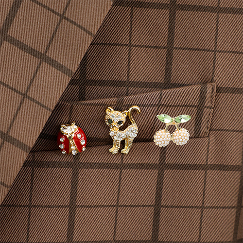 Pins cerezas / gato / mariquita Dorado-verde-rojo-negro
