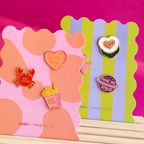 BY31® Pins "Fuck this" / "Oh crab" / "Fri yay" en una tarjeta Naranja-rosa multicolor-rojo-amarillo