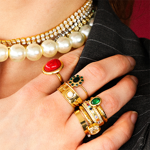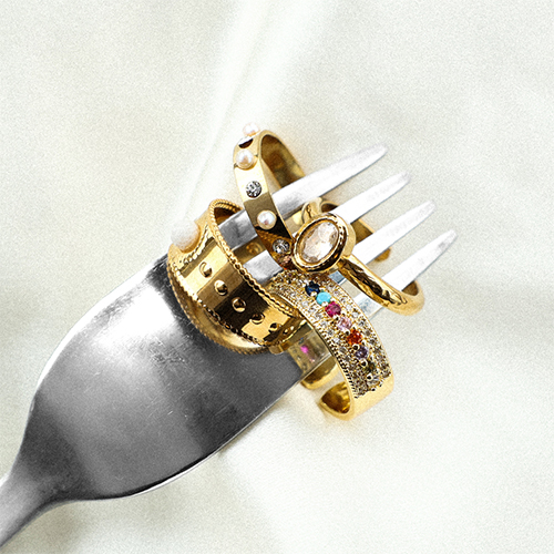 Metal TQ latón anillo zirconia Dorado-multicolor
