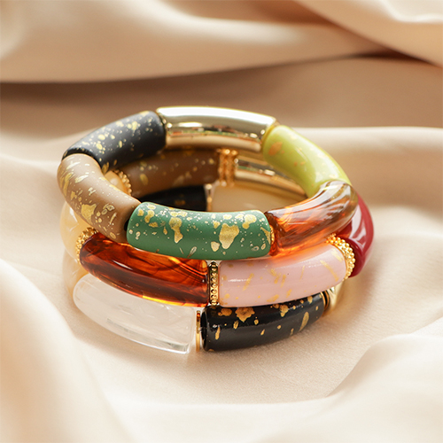 • Abalorios acrílicos tubo brillante Negro-dorado