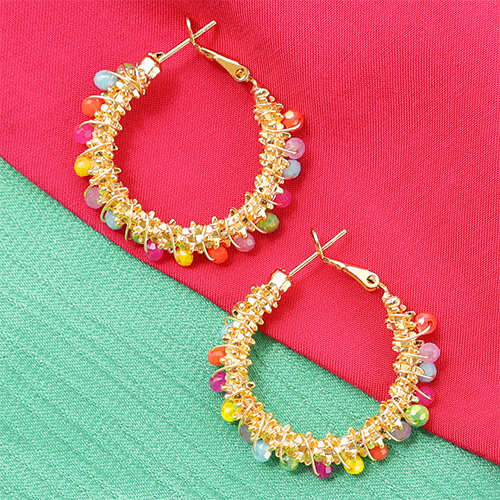 Pendientes Acero Inox faceteados Multicolor-dorado